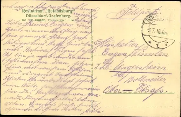 Zustand, siehe Scan, gelaufen, 1916- Inh. H. Junker - ca 14 cm X 9 cm
