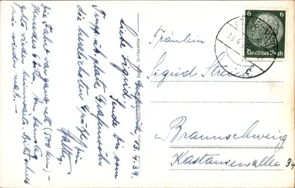 Zustand, siehe Scan, gelaufen, 1939 - ca 14 cm X 9 cm