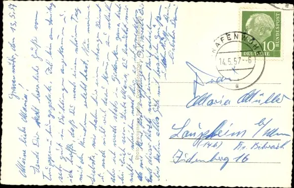 Zustand, siehe Scan, gelaufen, 1957 - ca 9 cm X 14 cm