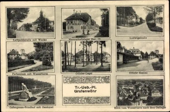 Ak Grafenwöhr in der Oberpfalz Bayern, Truppenübungsplatz, Wasserturm, Mannschaftslager