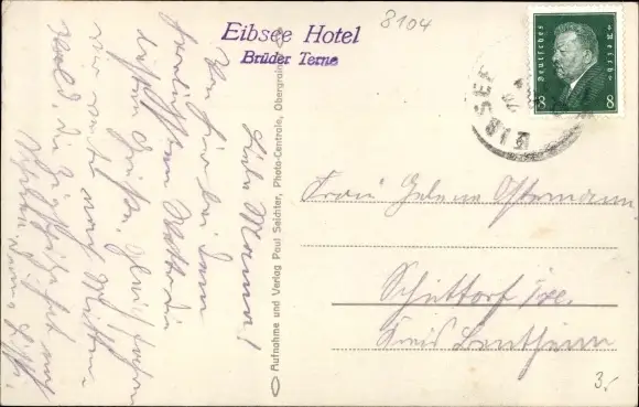 Ak Grainau in Oberbayern, Eibsee Hotel