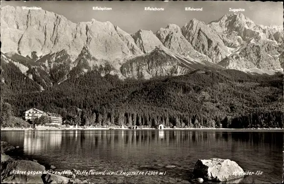 Ak Grainau in Oberbayern, Eibsee, Waxenstein, Riffelwand, Zugspitze