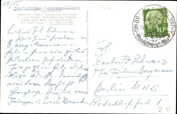 Zustand, siehe Scan, gelaufen, 1954- Bes. Josef Kistler - ca 9 cm X 14 cm