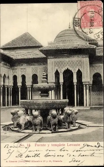 Ak Granada Andalusien Spanien, Alhambra, Löwenbrunnen, Templete Levante