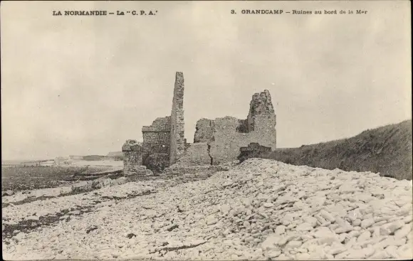 Ak Grandcamp Calvados, Ruines au bord de la Mer