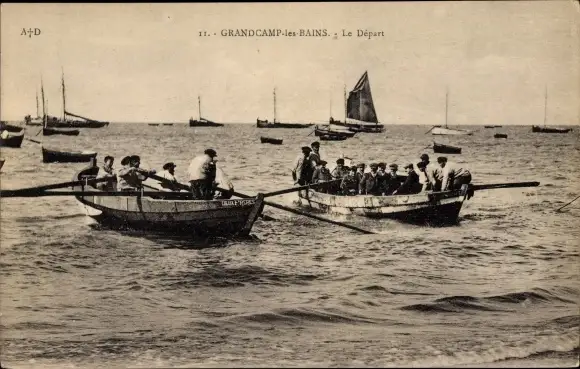 Ak Grandcamp les Bains Calvados, Le Depart, Ruderboote