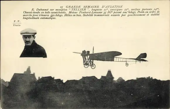 Ak Grande Semaine d’Aviation, E. Dubonnet im Tellier-Eindecker