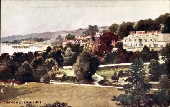 Ak Grange-over-Sands Cumbria England, Ortsansicht mit Meer