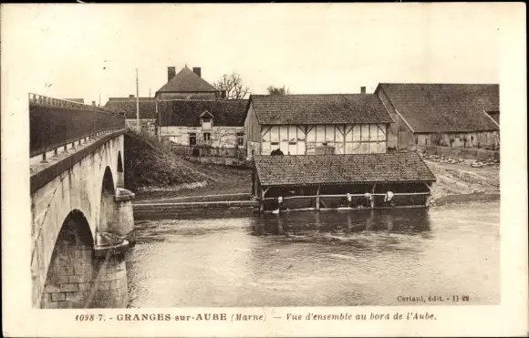 Ak Granges sur Aube Marne, Vue d'ensemble au bord de l'Aube