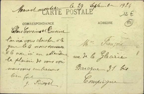 Zustand, siehe Scan, gelaufen, 1924 - ca 14 cm X 9 cm