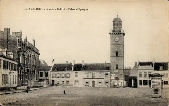 Ak Gravelines Nord, Beffroi, Mairie, Caisse d'Epargne