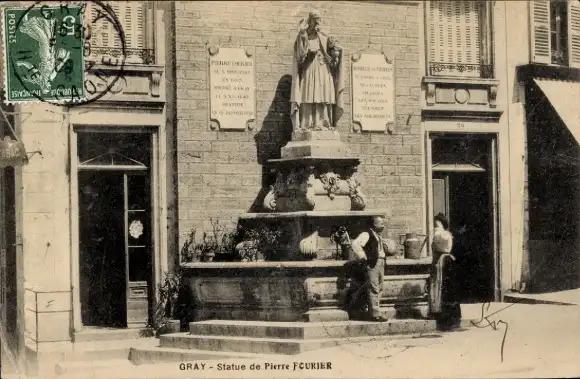 Ak Gray Haute Saône, Statue de Pierre Fourier