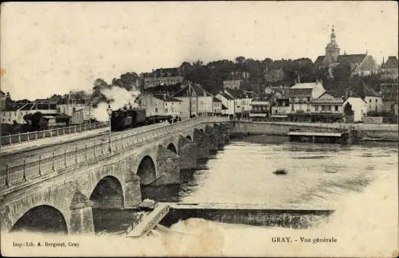 Ak Gray Haute Saône, Vue generale, Brücke, Fluss