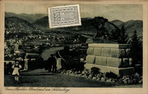 Ak Graz Steiermark, Hackherdenkmal, Hackher-Löwe, Schlossberg