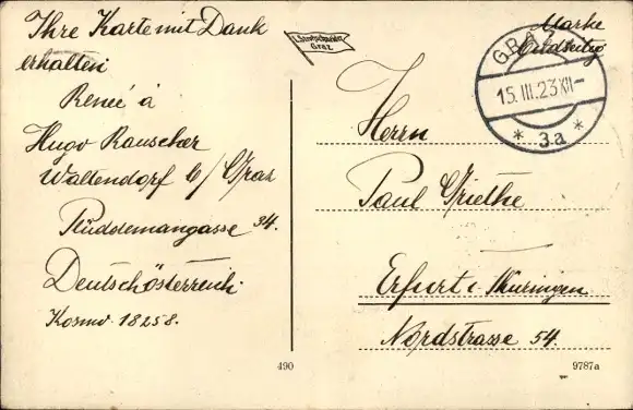 Zustand, siehe Scan, gelaufen, 1923 - ca 14 cm X 9 cm