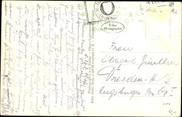 gelaufen 1942, Briefmarke entfernt, leichte Eckknicke, sonst guter Zustand
