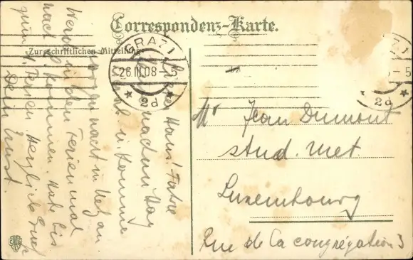Zustand, siehe Scan, gelaufen, 1908 - ca 14 cm X 9 cm