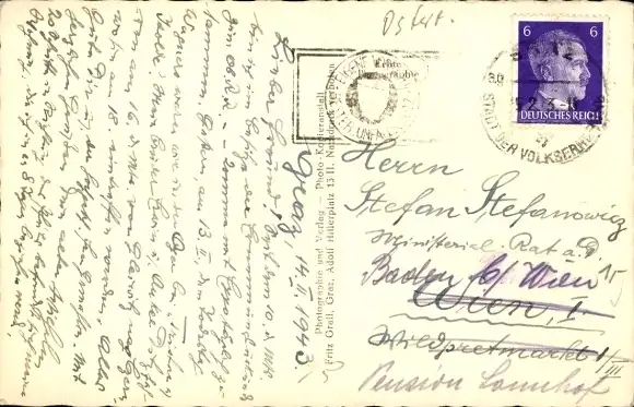 Zustand siehe Scan, gelaufen, 1943 - ca 14 cm X 9 cm