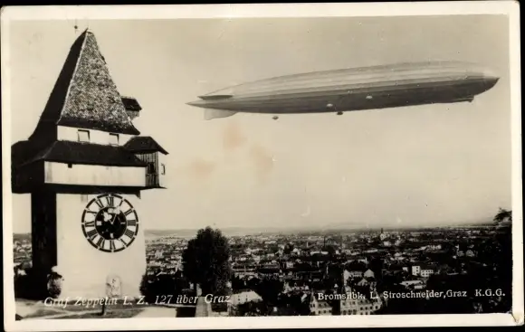 Ansichtskarte, Postkarte, Graz, Alt Graz, Luftschiff, Zeppelin, Zeppeline