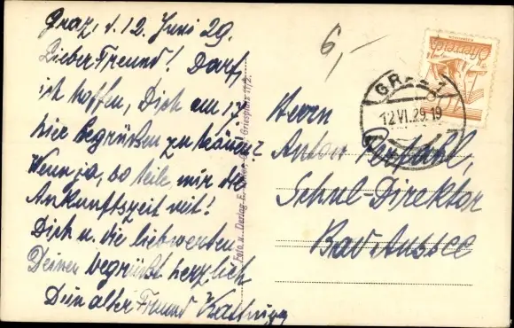 Zustand, siehe Scan, gelaufen, 1929 - ca 14 cm X 9 cm