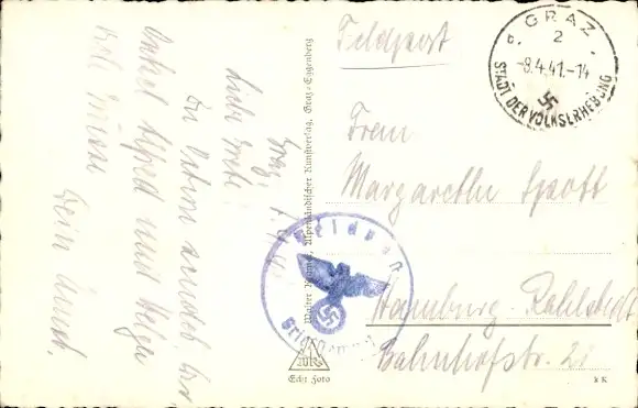 Zustand, siehe Scan, gelaufen, 1941 - ca 14 cm X 9 cm