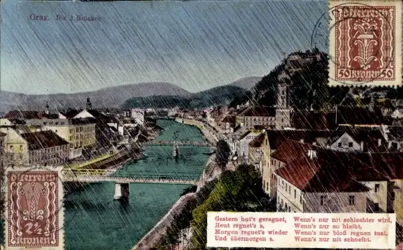 Ansichtskarte, Postkarte, Brücke, Brücken, Graz, Alt Graz
