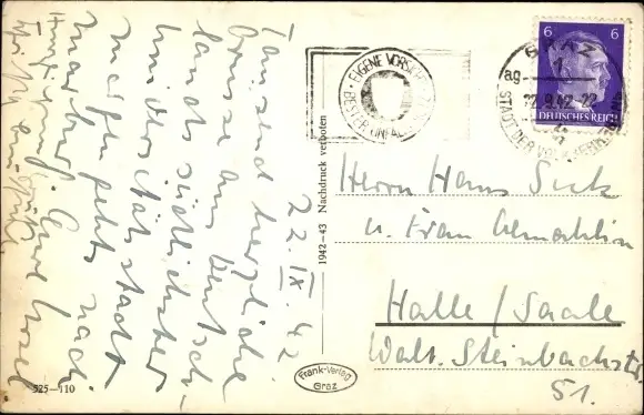 Zustand, siehe Scan, gelaufen, 1942 - ca 14 cm X 9 cm