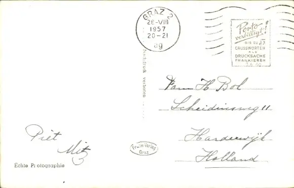 Zustand, siehe Scan, gelaufen, 1957 - ca 14 cm X 9 cm