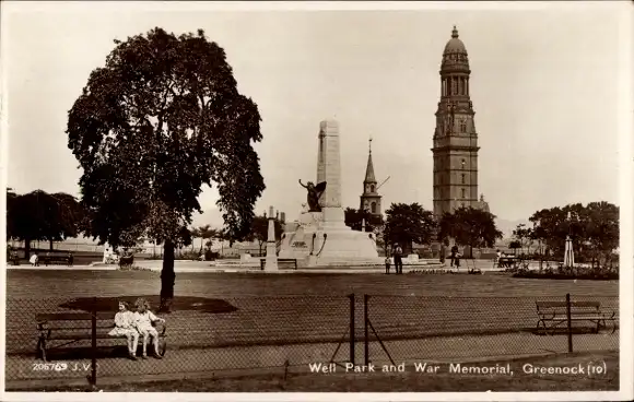 Ak Greenock Schottland, Kriegsdenkmal, Wellpark