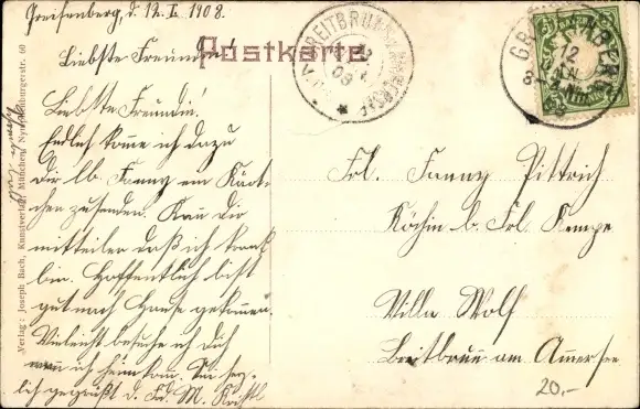 Zustand, siehe Scan, gelaufen, 1908 - ca 14 cm X 9 cm