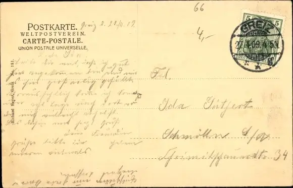 Zustand, siehe Scan, gelaufen, 1909 - ca 14 cm X 9 cm