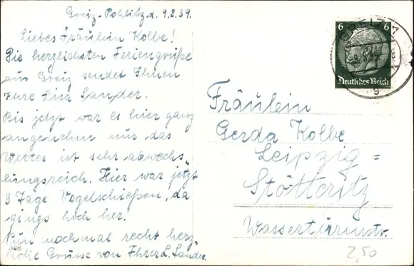 Zustand, siehe Scan, gelaufen, 1939 - ca 14 cm X 9 cm