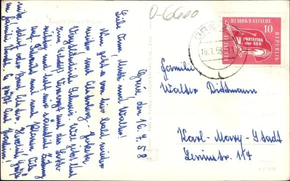 Zustand, siehe Scan, gelaufen, 1958 - ca 14 cm X 9 cm