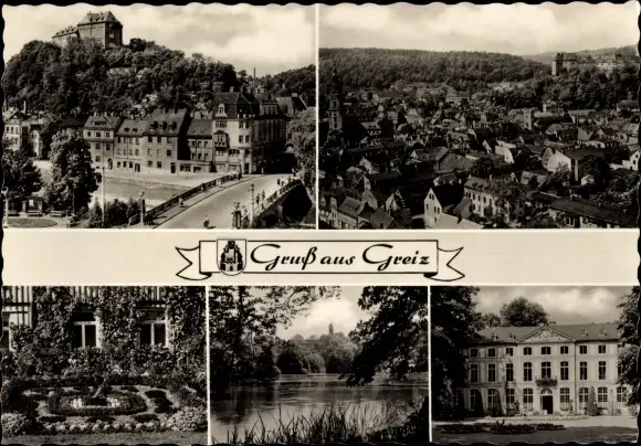 Ak Greiz im Vogtland, Blumenuhr, See, Brücke, Panorama