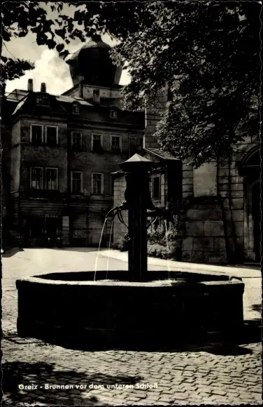 Ak Greiz im Vogtland, Brunnenm Unteres Schloss