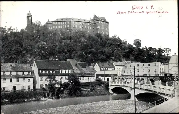 Ak Greiz im Vogtland, Oberes Schloss mit Heinrichsbrücke