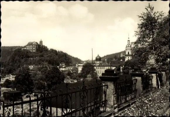 Ak Greiz im Vogtland, Ortsansicht mit Burg und Kirche