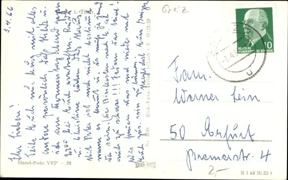 Zustand, siehe Scan, gelaufen, 1966 - ca 14 cm X 9 cm