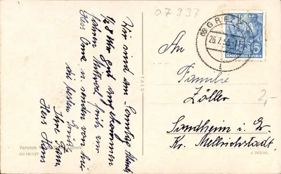Zustand, siehe Scan, gelaufen, 1955 - ca 9 cm X 14 cm