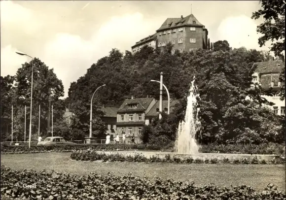 Ak Greiz im Vogtland, Schloss, Springbrunnen