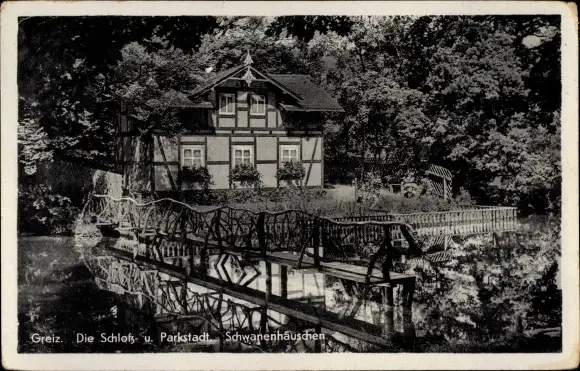 Ak Greiz im Vogtland, Schwanenhäuschen, Brücke
