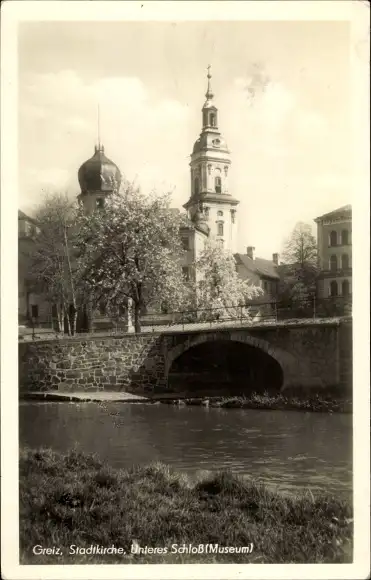 Ak Greiz im Vogtland, Stadtkirche, unteres Schloss, Museum
