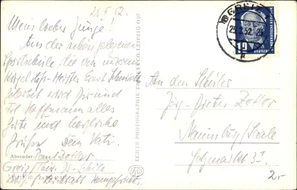 Zustand, siehe Scan, gelaufen, 1952 - ca 9 cm X 14 cm