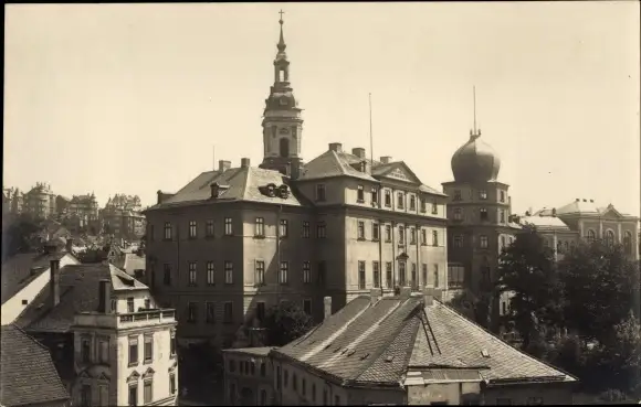 Ak Greiz im Vogtland, Teilansicht, Kirchturm