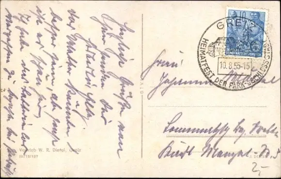 Zustand, siehe Scan, gelaufen, 1955 - ca 14 cm X 9 cm
