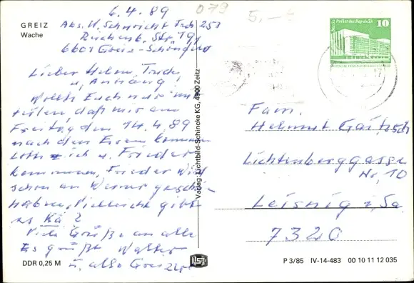 Zustand, siehe Scan, gelaufen, 1989 - ca 15 cm X 10 cm