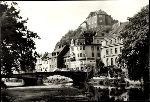 Ak Greiz in Thüringen, Brücke, Kreissparkasse, Konsum Gaststätte