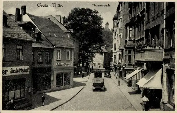 Ak Greiz in Thüringen, Thomasstraße, Geschäfte