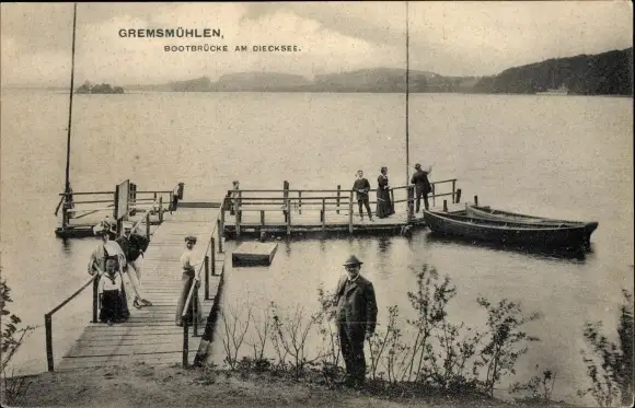 Ak Gremsmühlen Malente in Ostholstein, Bootbrücke am Diecksee