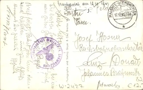 Zustand, siehe Scan, gelaufen, 1941 - ca 14 cm X 9 cm